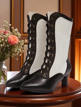 Edwardiaanse veterlaarzen voor dames uit de jaren 1900-1910 - tweekleurige lage haklaarzen in Victoriaanse stijl voor kostuumfeesten, vintage thee-evenementen en historische re-enactments