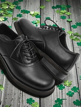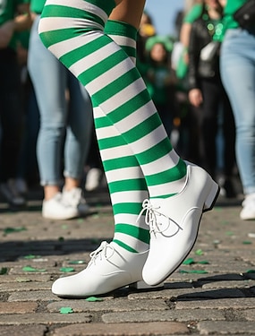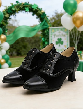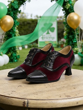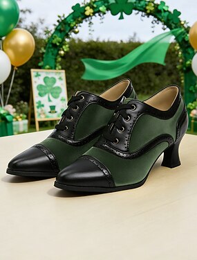 Groene veterschoenen met kleurblokken voor dames – stijlvolle vintage-geïnspireerde schoenen voor de St. Patrick's Day-vieringen.