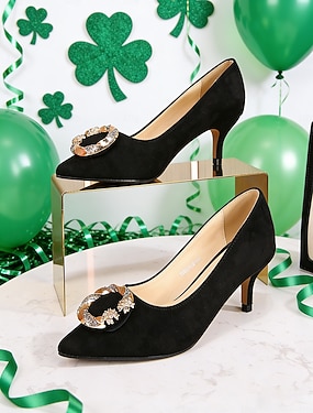 Smaragdgroene suède pumps met spitse neus voor dames, elegante lage stilettohakken met gouden gesp, klassieke geklede schoenen voor dames, perfect voor St. Patrick's Day-evenementen, parades en