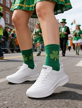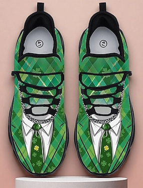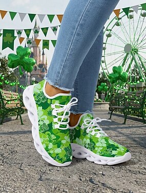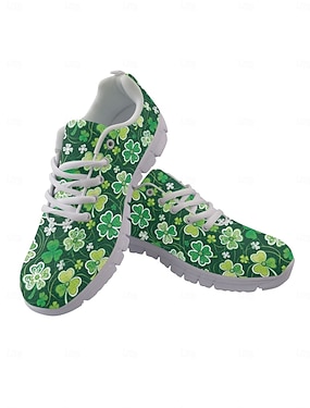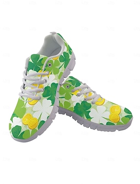 Dames hardloopschoenen met klaverprint voor St. Patrick's Day - lichtgewicht, ademende veterschoenen voor parades, festivals, reizen en wandelen. &actieve vrijetijdskleding