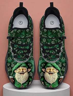 Dames sneakers met groene Keltische print en vetersluiting voor St. Patrick's Day - lichtgewicht, gedempte wandelschoenen voor Ierse festivals, parades, feesten en reizen. &alledaagse casual kleding