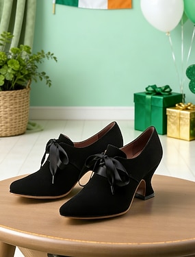 Damesschoenen met groene hakken voor St. Patrick's Day - vintage veterschoenen met blokhak voor feestelijke gelegenheden en parades.