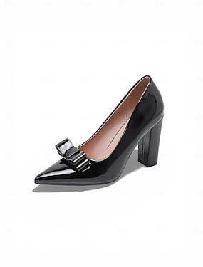 Damespumps met blokhak in groen lakleer, klassieke nette schoenen met strikdetail voor een St. Patrick's Day-feest.
