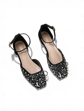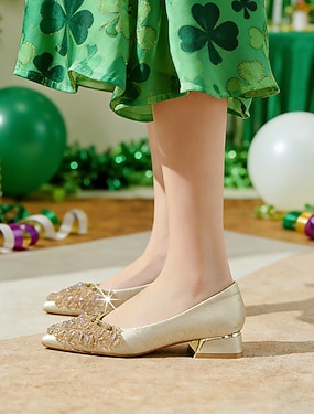 Groene ballerina's met strasssteentjes voor dames - glinsterende ballerina's met strik en enkelbandje voor de viering van St. Patrick's Day en Ierse festivals. &feestkleding