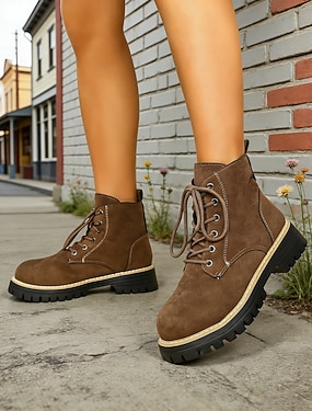Dames enkellaarsjes in groene stijl van imitatie suède met vetersluiting en dikke zool, ideaal voor St. Patrick's Day, marktbezoekjes, festivals en dagelijkse boodschappen.