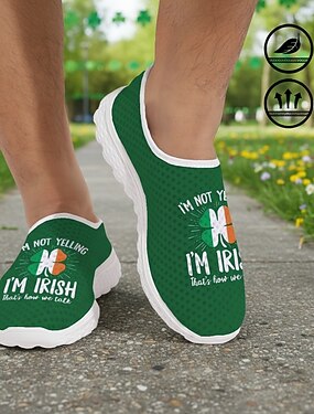 Damessneakers van flyknit met Ierse klaverprint – lichtgewicht, ademende wandelschoenen met een gedempte zool, casual sneakers voor dagelijks gebruik, parades, St. Patrick's Day, reizen en buitenactiviteiten.