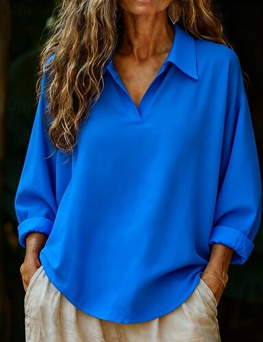 Dames Overhemd Blouse Effen Stijlvol Klassiek Modern Lange mouw Overhemdkraag Normale tops Dagelijks Feestdagen Uitgaan blauw Wit Blozend Roze Groen Zomer Lente