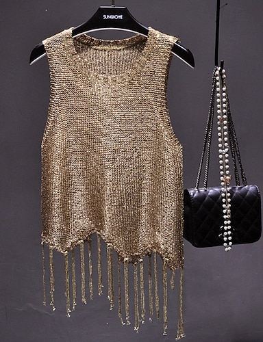 Dames Blouse Oogje top Hemdje Tanktop Effen Stijlvol Sexy Casual Mouwloos Strakke ronde hals Normale tops Dagelijks Feestdagen Uitgaan Uitgesneden Schitteren Zwart Khaki Abrikoos Zomer Lente Herfst