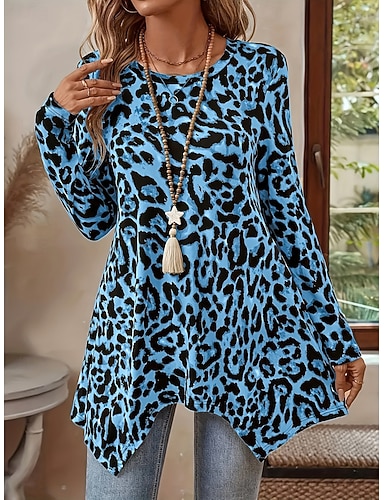 Dames Tuniek Grafisch Luipaard Vintage Modieus Casual Lange mouw Strakke ronde hals Lange tops Dagelijks Weekend Afdrukken blauw Blozend Roze Rood Paars Bruin Herfst Winter