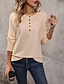 Dames Wafelgebreide tops Knop Effen Kleur Stijlvol Klassiek Lange mouw Henley Normale tops Dagelijks Uitgaan Licht beige Lente Herfst