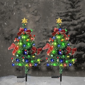 Zonne-energie Kerstboom Lichten Buiten Waterdichte LED Kunstmatige Voorverlichte Kerstboom Decoraties Zonne-energie Mini Kerstbomen Tuinstekker met Lichten voor Tuin Tuin Gazon Pad