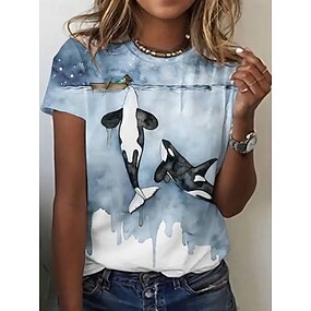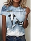 Dames T-shirt Afdrukken Grafisch dier Vintage Stijlvol Klassiek Korte mouw Strakke ronde hals Normale tops Dagelijks Weekend blauw Zomer Lente