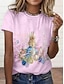 Pasen Dames T-shirt Afdrukken Grafisch dier Tekenfilm Modieus Stijlvol Klassiek Korte mouw Strakke ronde hals Normale tops Dagelijks Weekend blauw Zwart Wit Blozend Roze Paars Zomer Lente