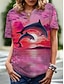 Dames T-shirt Afdrukken Ombre Grafisch Vogel Bohemen Hawaii Stijlvol Korte mouw Strakke ronde hals Normale tops Dagelijks Geel Blozend Roze Groen Zomer Lente