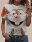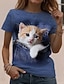Dames T-shirt Afdrukken Grafisch dier Kat Vintage Stijlvol Klassiek Korte mouw Strakke ronde hals Ronde hals Normale tops Dagelijks Weekend blauw Wit Rood Paars Groen Zomer Lente