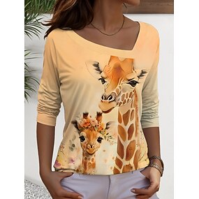 Dames T-shirt Afdrukken Grafisch dier Giraffe Vintage Modieus Stijlvol Korte mouw Lange mouw Strakke ronde hals Ronde hals Normale tops Dagelijks Weekend blauw Zwart Wit Blozend Roze Khaki Zomer