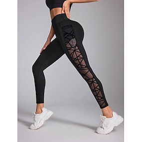Dames Broek Leggings Modieus Streetwear Basic Volledige lengte Hoge taille Effen Elastische taille Netstof Ademend Comfortabel Rekbaar Dagelijks Sportschool Yoga Zwart Marineblauw Donkergrijs Lente