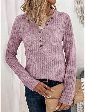 Dames Blouse Knop Gebreid Effen Kleur Stijlvol Casual Lange mouw Strakke ronde hals Normale tops Dagelijks blauw Zwart Geel Lichtgroen Rood Lente Herfst Winter