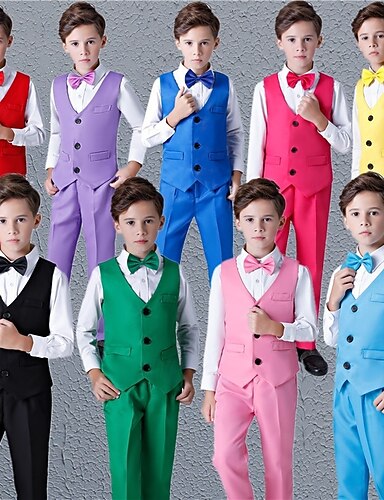 4-delig ringdragerpakje jongens kinderpakje vest & shirt &broek voor jongens, formeel pak, casual, outdoor, feest, mode, cool, basic, effen kleur, blauw, zwart, wit, nylon
