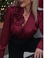 Kerstmis Dames Blouse Effen Kleur Elegant Stijlvol Zakelijk Lange mouw V-hals Normale tops Dagelijks Wit Wijn Bruin Zomer Lente Herfst