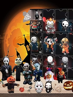 Kerst horrorfilm adventskalender 2025 bevat 24 kerstcadeaus, kerst horror figuren aftelkalender met verrassingsspeelgoed, verzamelfiguren cadeaus voor kinderen