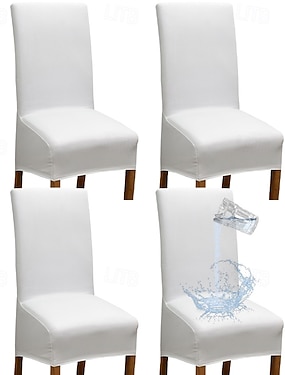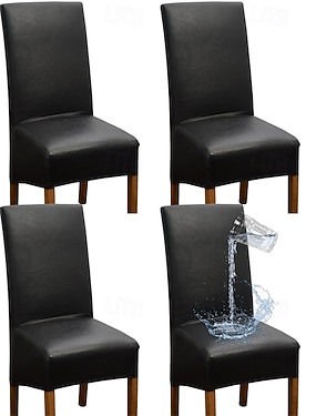 waterdichte eetkamerstoel hoes zwarte stretch stoel hoes pu leer hoge rugleuning stoel hoes beschermer met elastische band voor eetkamer, bruiloft