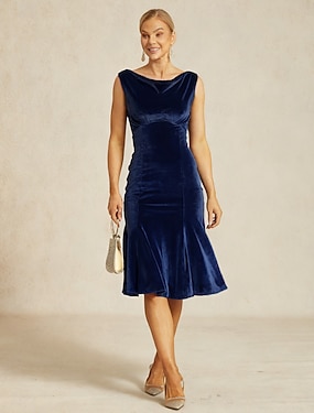 Dames Halflange jurk Trompet- zeemeerminjurk Elegant Feest Bruiloft gast Cocktailparty Normale pasvorm Effen Kleur Mouwloos Col Olijf