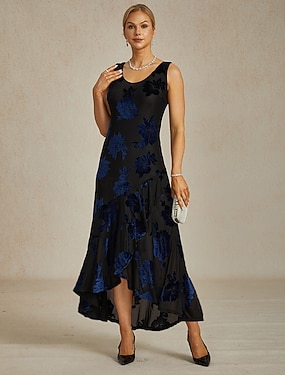 Dames Maxi-jurk Schede jurk Elegant Bruiloft gast Afspraakje Asymmetrisch Bloemig Mouwloos Strakke ronde hals Groen