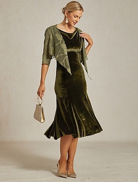 Dames Sequins Theeleeftijd Formele Jurk A-Lijn Jurk Cape Jurk Elegant Bruiloft Bruiloft Gast Cocktailfeest Regular Fit Effen Halve Mouw V Hals Donkergroen Zomer Lente Herfst