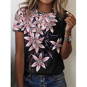 Dames T-shirt Afdrukken Bloemig Grafisch Planten Vintage Stijlvol Klassiek Korte mouw Strakke ronde hals Ronde hals Normale tops Dagelijks blauw Zwart Oranje Zomer Lente