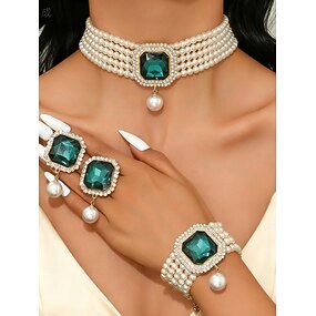 damesparel en groene edelsteen sieradenset 3-delig, vintage choker, armband &ring voor kerstfeestjes, vakantiecadeaus &elegante avonden