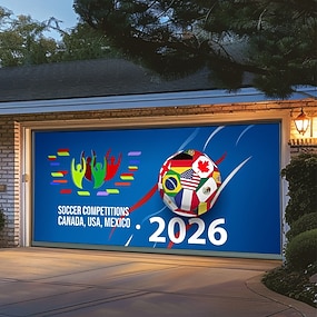 2026 voetbalcompetities Canada VS Mexico wereldvoetbaltoernooi vlag voetbal garagedeur banner muurschildering buitenhuis tuin decoratie sportfan feest achtergrond groot hangend bord