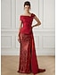 Trompet / zeemeermin Strijksleep Galajurken Avondjurken Baljurk Formele kleding Elegant Celebrity-Stijl Glitter Lange mouw Schouderafhangend Formeel Bruiloft Satijn met Glitter 2025