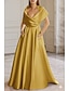 A-lijn Tot de grond Avondjurken Baljurk Formele kleding Elegant Kleurenblok Zijdeachtig Mouwloos Revers Formeel Bruiloft Satijn met Plooien 2025