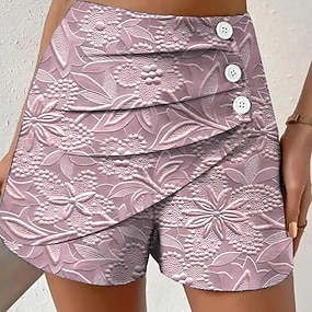 Dames Chinese Korte broek Vakantie Vintage Etnische stijl Korte Hoge taille Bloemig Grafisch Geplooid Micro-elastisch Dagelijks Buiten Vakantie paars Roodborstje Rood Roze Groen Zomer Lente Normale