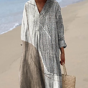 Dames Overhemd Knop Afdrukken Geometrisch Kleurenblok Stijlvol Modern Lange mouw V-hals Normale tops Dagelijks Feestdagen blauw Kastanjebruin Zwart Bruin Zomer