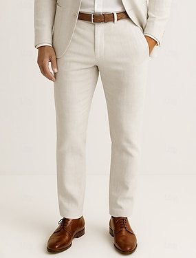 100% linnen Voor heren Linnen broek Broek Trekkoord Elastische taille Recht been Effen Comfort Ademend Casual Dagelijks Feestdagen Modieus Klassieke Stijl Beige