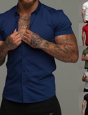 Voor heren Overhemd Zomer overhemd Overhemd met knopen Zwart Wit Rood blauw Groen Korte mouw Effen Kraag 3D-afdrukken Buiten Casual Kleding Casual Strakke pasvorm