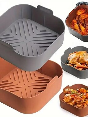 2-pack siliconen airfryermatten – 8,27 inch hittebestendig, herbruikbaar, antiaanbaklaag, vaatwasserbestendig, geschikt voor airfryers van 5,5–7 qt, geschikt voor levensmiddelen, gemakkelijk schoon te