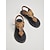 Zwarte platte sandalen voor dames in bohemian stijl - comfortabele boho-sandalen met bandjes en gevlochten details. &Enkelbandje voor eilandvakanties en strandwandelingen. &tropische