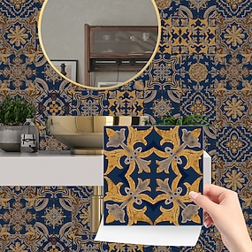 24 stuks Marokkaanse tegelstickers, verdikte kristalfolie pvc-muurstickers, waterdicht &oliebestendige, verwijderbare retro tegelmuurdecoratie voor badkamer, keuken en vintage huis