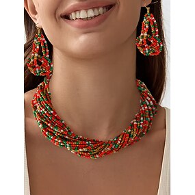 Set van veelkleurige kralenketting en oorbellen voor dames, feestelijke handgemaakte sieraden voor een kerstfeestje &vakantie-outfits