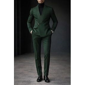 Heren Smoking Kostuums Feest Bruiloft Zwart Koningsblauw Lente, Herfst, Winter, Zomer Pak Sjaalrevers Modieus Zakelijk Effen Standaard pasvorm 2-delige set Enkele rij knopen met één knoop
