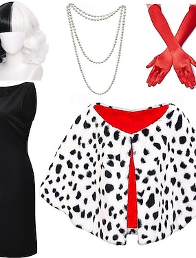 Retro vintage Tot de knie Cosplay kostuum Outfits Cosplay Pruiken Cruella De Vil Polka dots Kostuum Halloween Carnaval Maskerade Feestje / cocktail Fancy feest Volwassenen Alle seizoenen