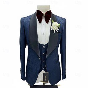 Heren Smoking Strand bruiloft Lente bruiloft blauw Zwart Lente zomer Pak Sjaalrevers Feest Zakelijk Effen Getailleerd 3-delige set Enkele rij knopen met één knoop
