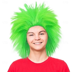 Kort Groen Groot Krullend Golvend Gelaagd Perücken voor Vrouwen Cosplay Feest Synthetisch Vezelhaar Perücken Halloween Perücken St.Patrick's Day Perücken