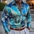 Voor heren Geometrisch Overgangskleur Overhemd Satijnen overhemd Lange mouw Vintage Retro Vakantie Dagelijks gebruik Zomer Lente Herfst Strijkijzer 3D-afdrukken Overhemden met knoopjes blauw Groen