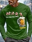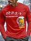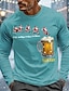 Kerstmis Voor heren Kerstman Grappig Oktoberfest bier T-shirt Lange mouw T-shirt 3D-afdrukken Strakke ronde hals Overhemd Modieus Basic 3D Straat Casual Dagelijks blauw Waterblauw Rood Zomer Lente