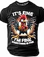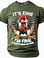 grappig kippen t-shirt, het is prima, ik ben prima, alles is prima shirt, gekke haan grafische humor t-shirt, stressverlichtend boerderijdier cadeau voor mannen, sarcastische kippenliefhebber kleding,