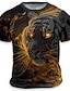 Voor heren dier Tijger Grappig T-shirt Korte mouw T-shirt 3D-afdrukken Strakke ronde hals Overhemd overdreven Ontwerper Feest Feestdagen Zwart 1 Zwart 3 Zwart 2 Zomer Lente Kleding S M L XL XXL XXXL